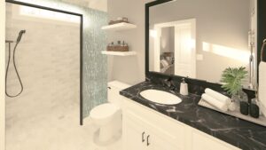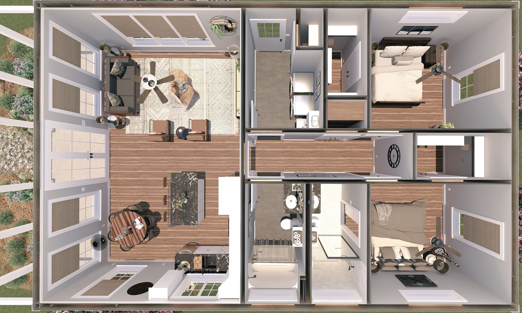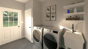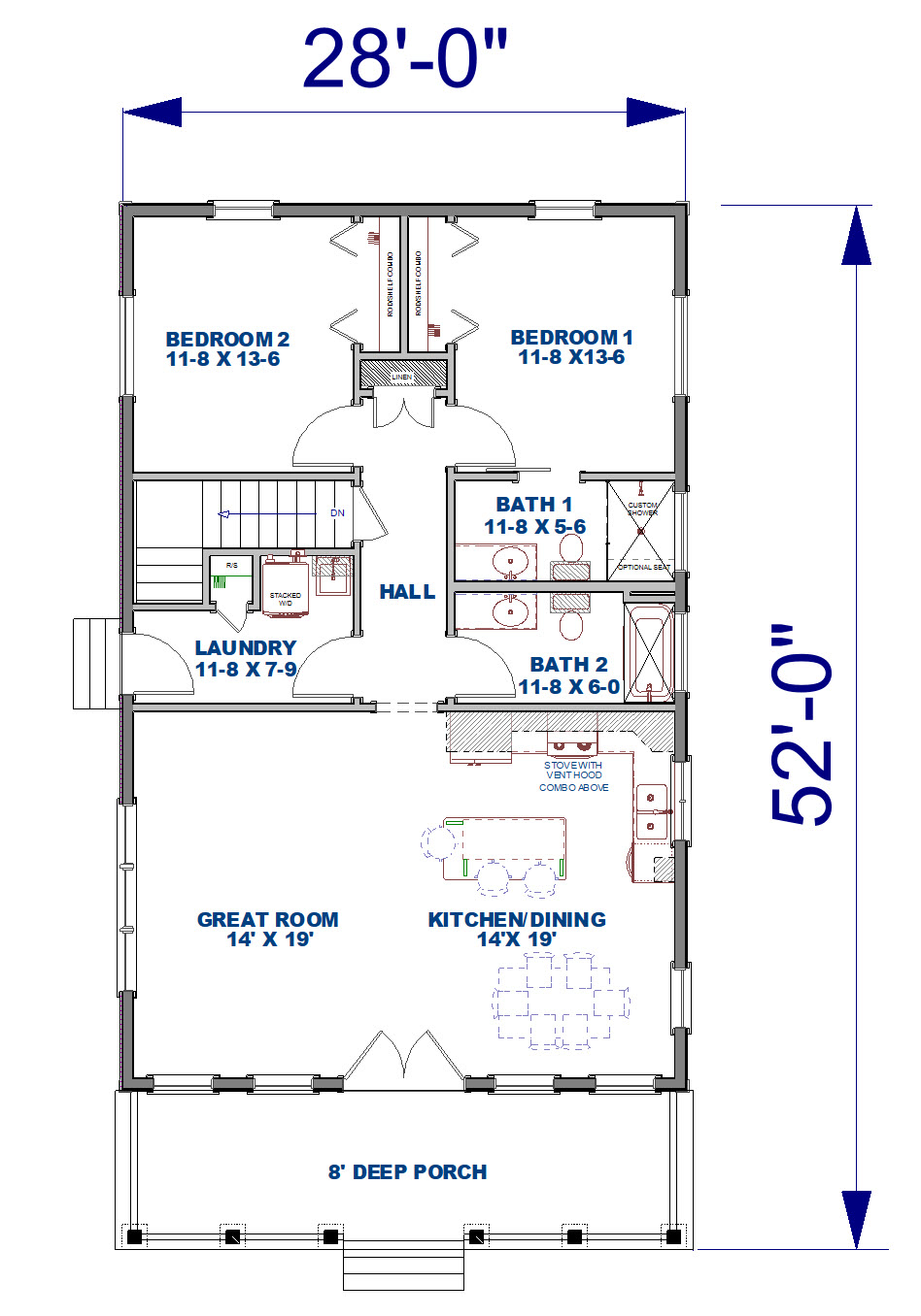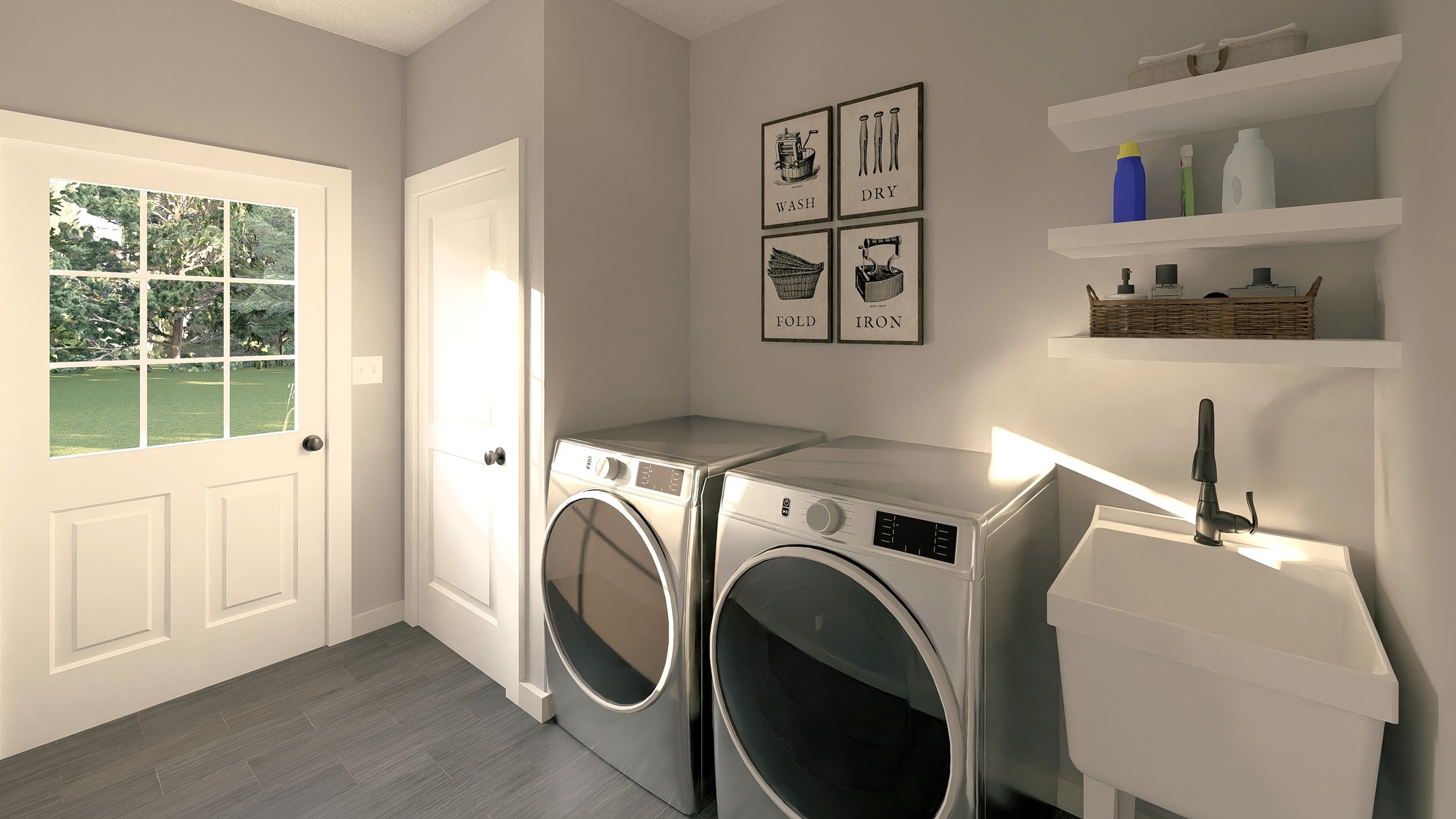 Made up of 1,158 square feet, with 2 bedrooms, 2 bathrooms, and an open floor plan, this little home has lots to offer. The L-shaped kitchen has upper and lower cabinets to provide a great amount of storage. The kitchen and Great Room flow together making socializing and family time easy. There is a linen closet in the hall between the 2 bedrooms for additional storage. The laundry room has a coat closet, a stacked washer and dryer, and a laundry sink. If the coat closet was removed, there would be space for a washer and dryer instead of the stackable. This would be left up to the owners. Bedroom 1 has direct access to a private bathroom with a custom shower. There is another bathroom easily accessible for guests with a tub/shower combo.