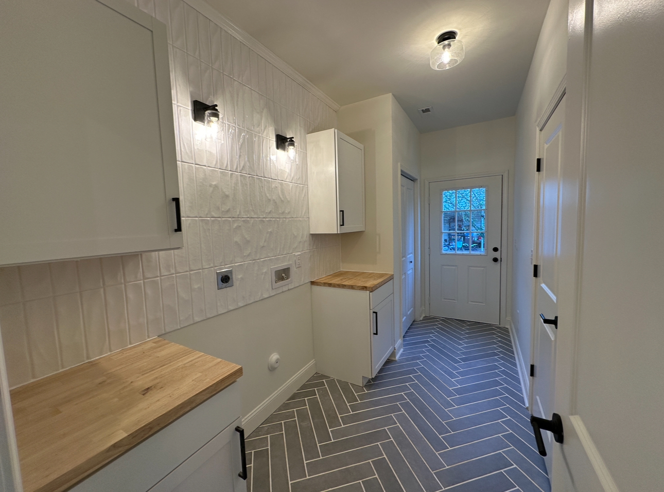 This gorgeous, country-style home consists of three bedrooms and two bathrooms within 1,334 square feet. The Great Room, Kitchen, and Dining Area share a large open floor plan. The Kitchen features a large island with a microwave drawer, an additional sink, and seating. Upper and lower cabinets provide plenty of kitchen storage. The spacious laundry room has cabinets for additional storage and a closet conveniently located by the exterior door. The Master Bedroom has a large walk-in closet, a bathroom with double sinks, a linen closet, and an oversized shower. The other two bedrooms are on the opposite side of the home with a bathroom between the two. From the kitchen, there is an 8-foot-deep deck.
