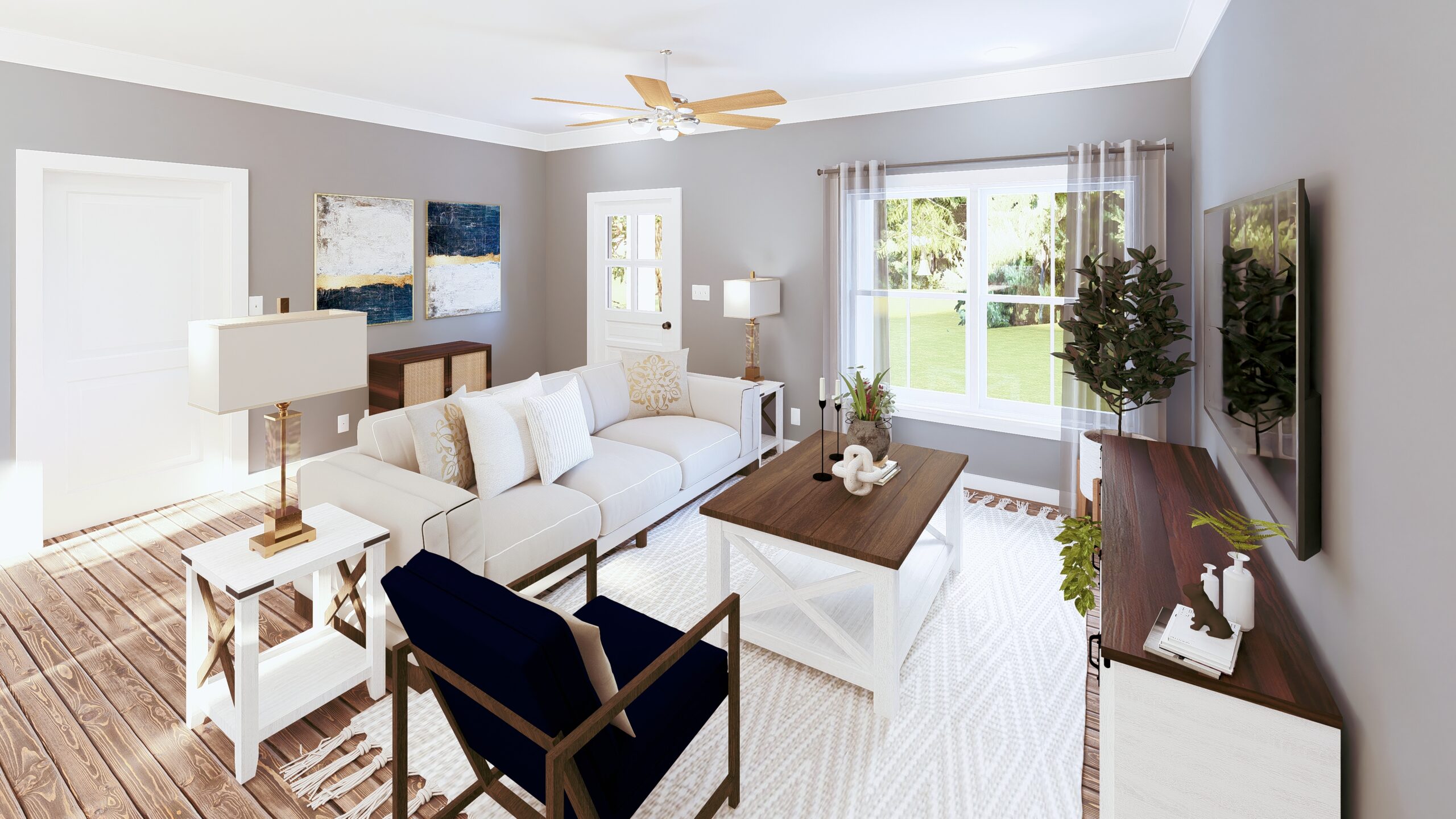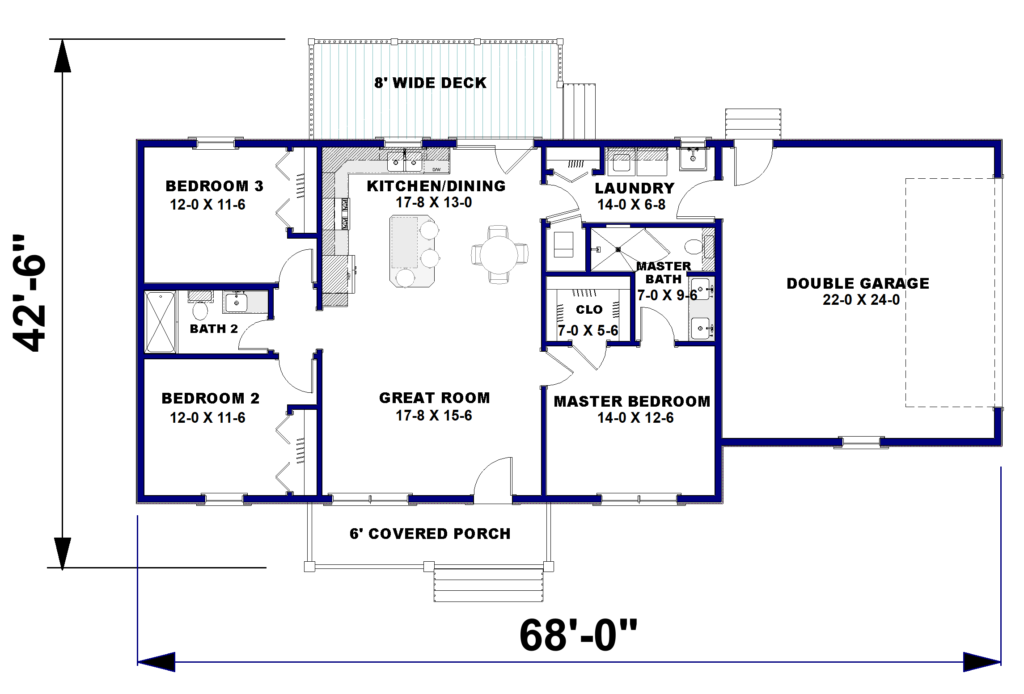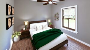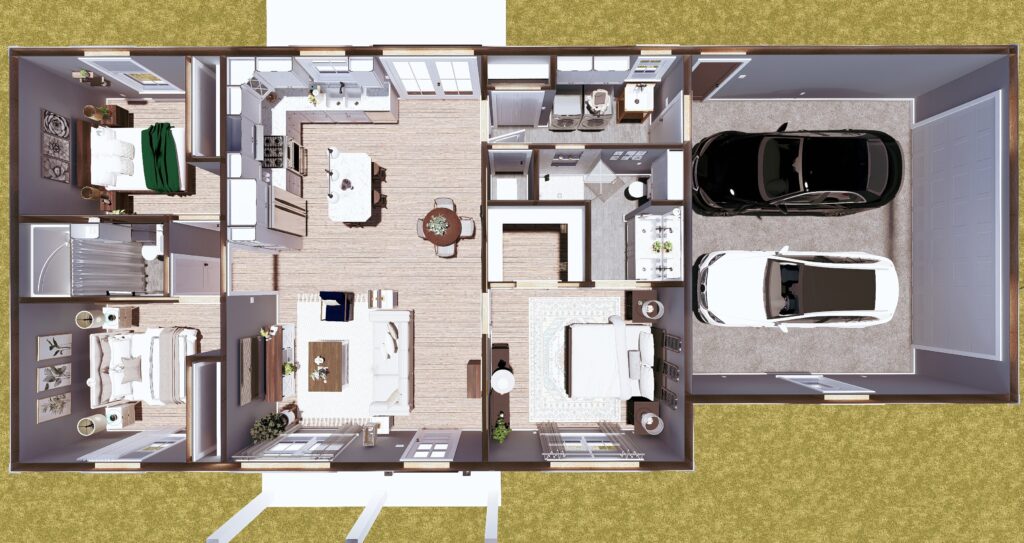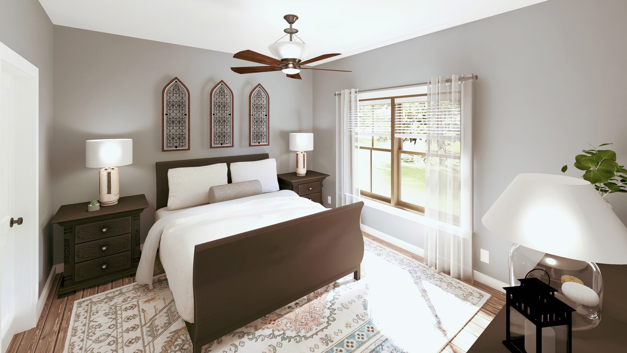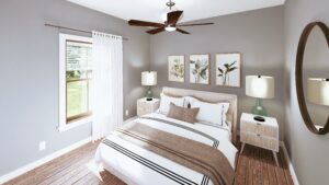 Split bedroom layout for privacy.