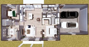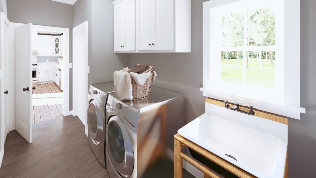 The large Laundry room has lots of storage and a laundry sink for easy cleanup – located off the double garage.