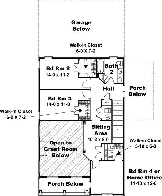 On the second floor, a Sitting Area is open to the Great Room below with fixed french doors that spill light into the Great Room below. All bedrooms, on this level, have large walk-in closets and share access with a full bath.