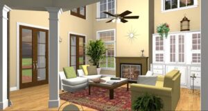 This two-story beauty features an open, airy Great Room and Dining Area, highlighted by a gas fireplace, double French doors, and columns, and built-in custom cabinets.