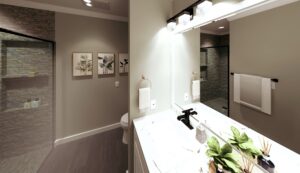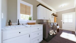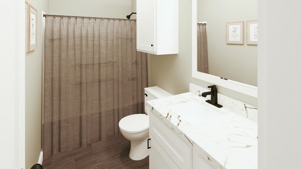 This floor plan offers 1,402 heated square feet with 3 bedrooms and 2 bathrooms. The garage is a drive-under 2-car garage. The main living area is open and spacious, featuring a large island with a counter-high snack bar in the kitchen. Additionally, there is a walk-in pantry in the laundry room. The laundry/mudroom is equipped with a sink, counter space, and locker area. The split bedroom layout provides privacy, with the Master bedroom featuring a walk-in closet, a bathroom with dual sinks, and a custom shower. In the rear, there is an 8-foot-deep deck. The walkout basement includes a 2-car garage, space for a future bathroom, and an owner’s choice room with room for storage.