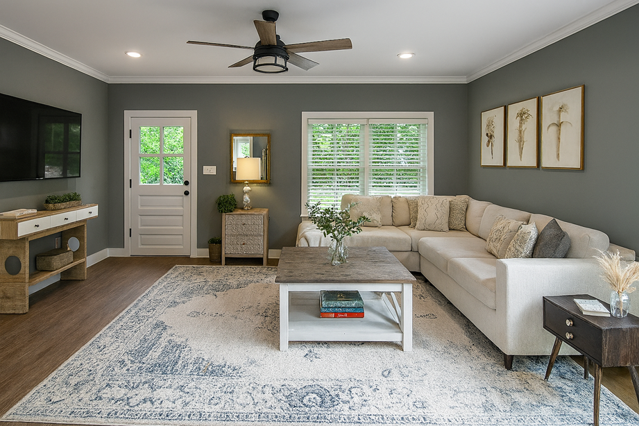 This beautiful board and batten home with an 8-foot deep covered front porch is so welcoming. When you enter the home, you will see that the great room and kitchen/dining area share an open floor. This is ideal for entertaining or for family time. The L-shaped kitchen features lots of cabinets for storage, an island with a snack bar, and a pantry.