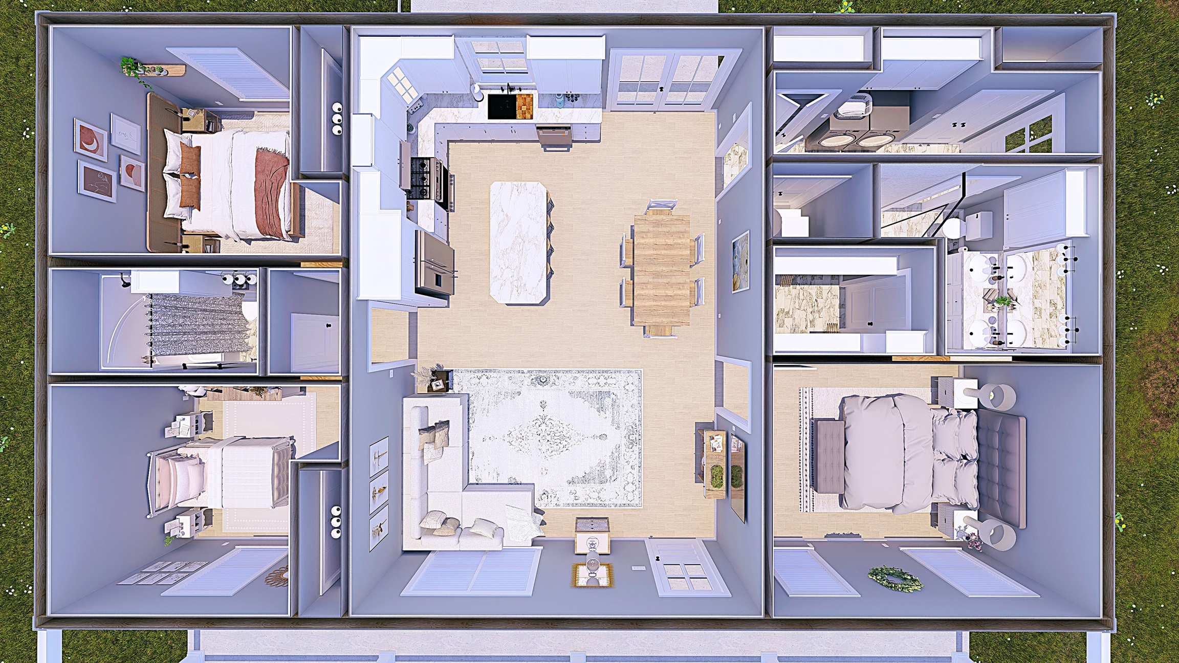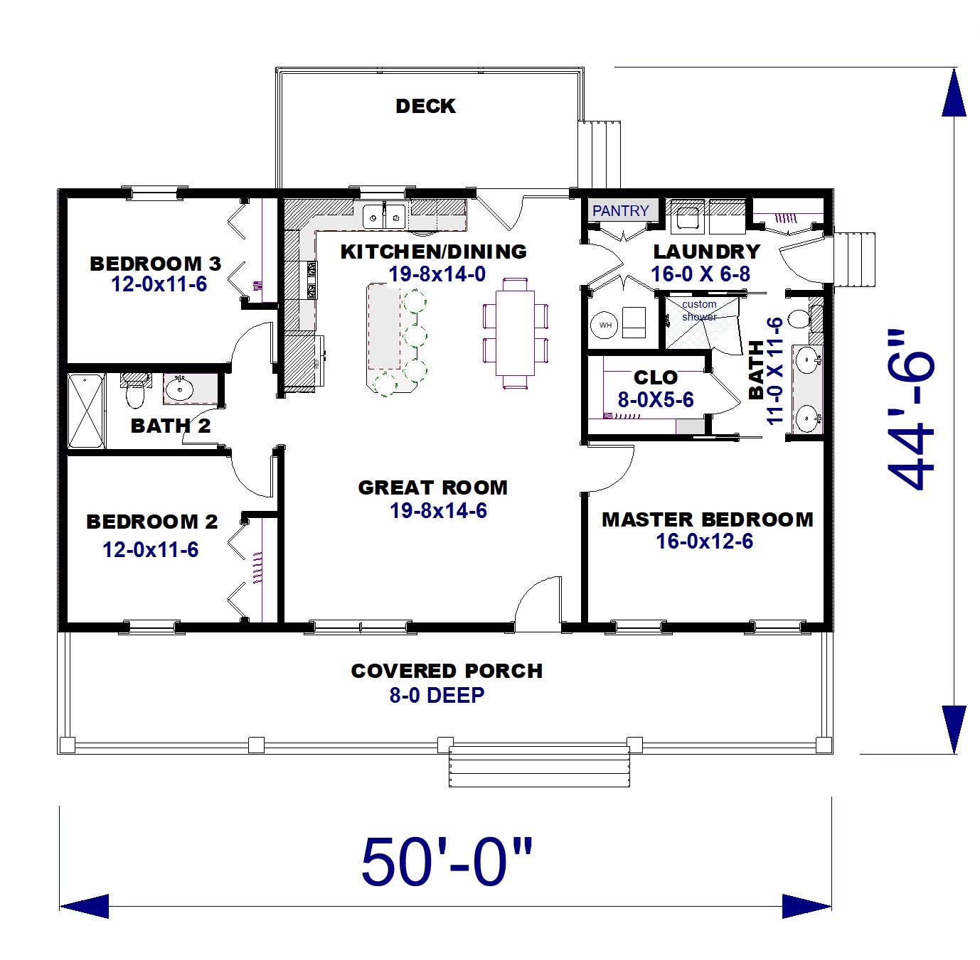 Two bedrooms share a bathroom in the hall between them. The Master bedroom is located on the opposite side of the home for privacy. There is a large, walk-in closet, and the bathroom has a large, custom shower, and dual sinks. The laundry room can be accessed directly from the master bath, and there is an extra closet there for more storage.