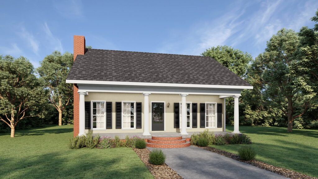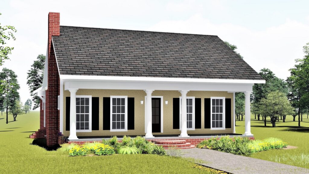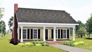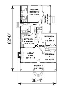 This plan is perfect for a narrow lot of someone looking for a lot of house on a small budget. A large Great Room is home to a gas fireplace flanked by built-in cabinets with windows above. The Great Room has easy access to the Kitchen/Dining Area through an arched opening. The Kitchen/Dining Area has lots of storage and a walk-in pantry. A built-in storage bench can be found in the rear hall, the prefect spot for taking off your shoes after a long day. Bedrooms 2 and 3 share a compartment style bath with easy access for guests also, a large linen closet is located in this area for extra storage. The Master Bedroom is designed for extra privacy; French doors lead out onto the rear covered porch. The Master Bath is within easy access of a large walk-in closet. Two porches give you options and welcome you home at the end of a long day.