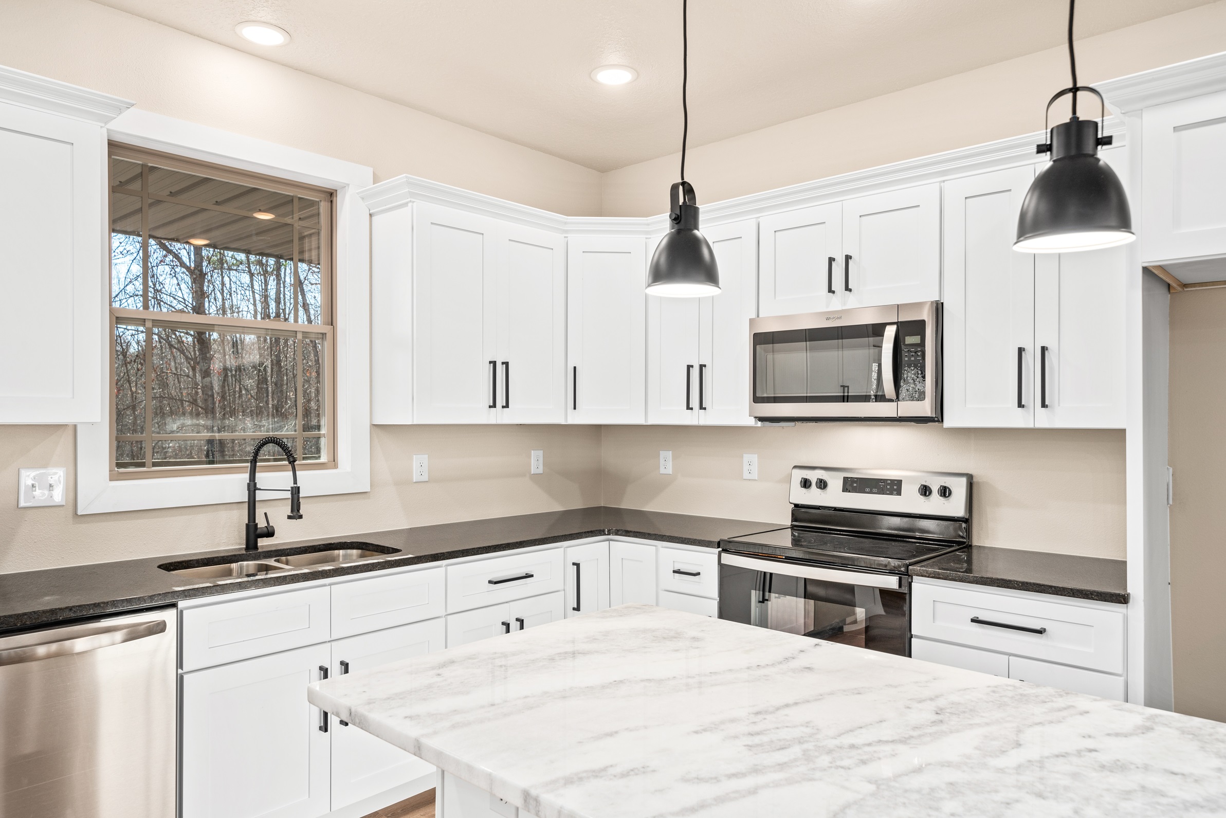 Explore the perfect blend of comfort and style in this 3 bed , 2 bath home with a split bedroom layout. Step into a spacious great room, leading to a large kitchen and dining area. French doors open to a large covered rear porch, great for entertaining. The master bedroom boasts a walk-in closet and custom shower. Adjacent to the kitchen is a convenient laundry room with a mudroom dropzone with garage access nearby. Bedrooms 2 and 3 share a full size bathroom.