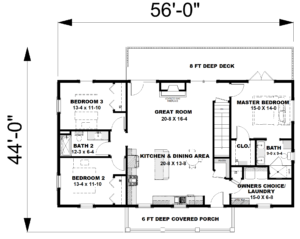 This 3-bedroom 2-bath house plan is designed with your privacy in mind. The Great Room and Master