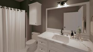 linen storage, and a walk-in shower. Bedrooms 2 and 3 are separated for privacy, each offering ample