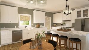 space and a walk-in closet. All doors are 36” wide for easy access, except for the pantry which is 32”