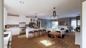 Kitchen is spacious, featuring a large island with seating, a Walk-in Pantry, and a Dining Area. The Great