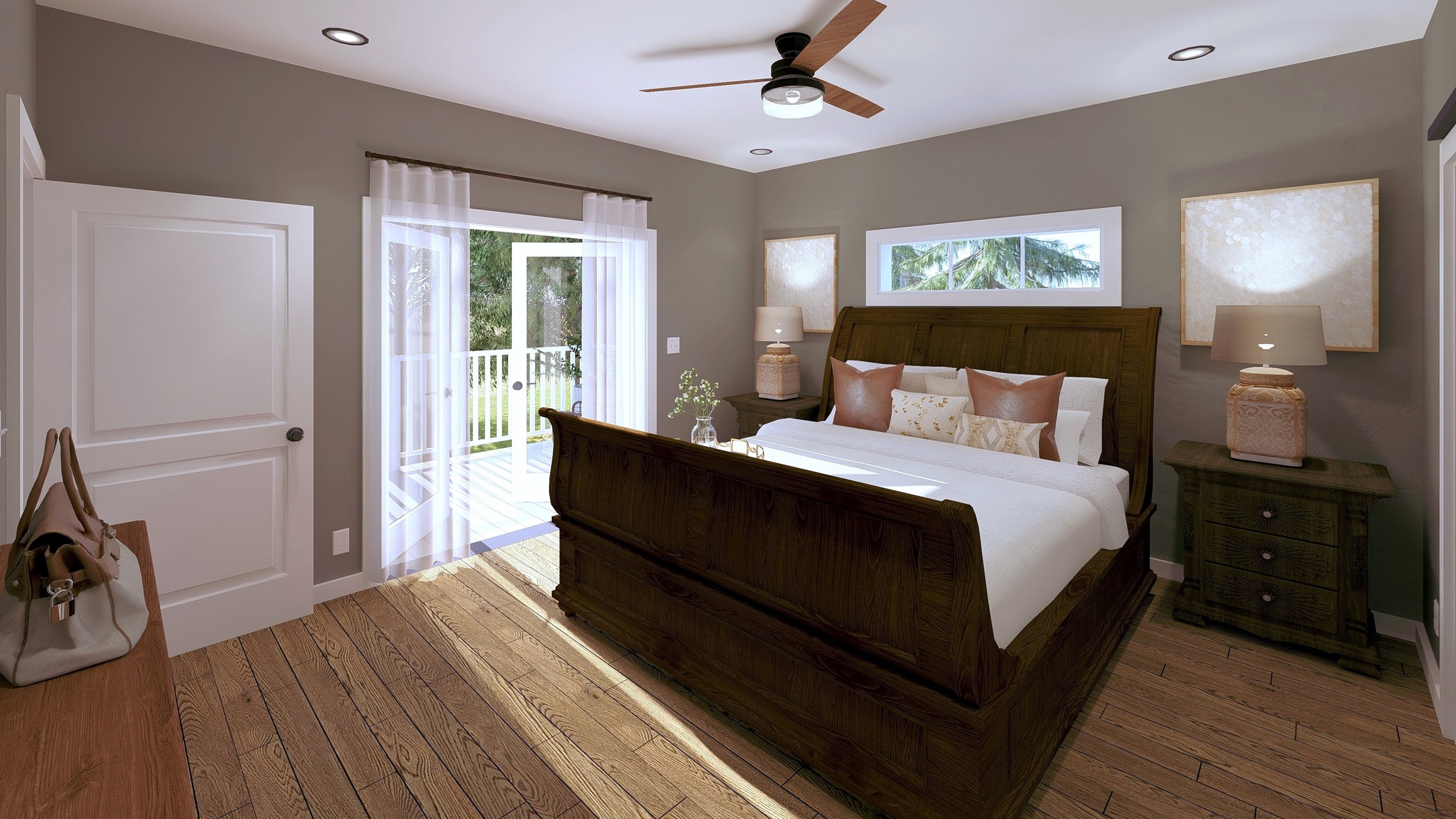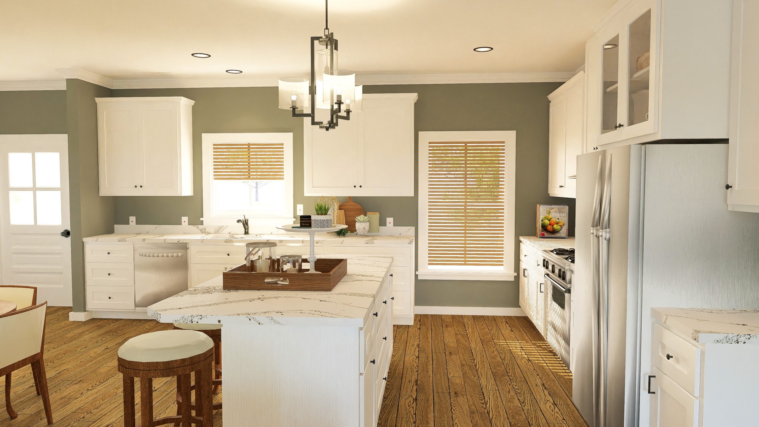 space and a walk-in closet. All doors are 36” wide for easy access, except for the pantry which is 32”