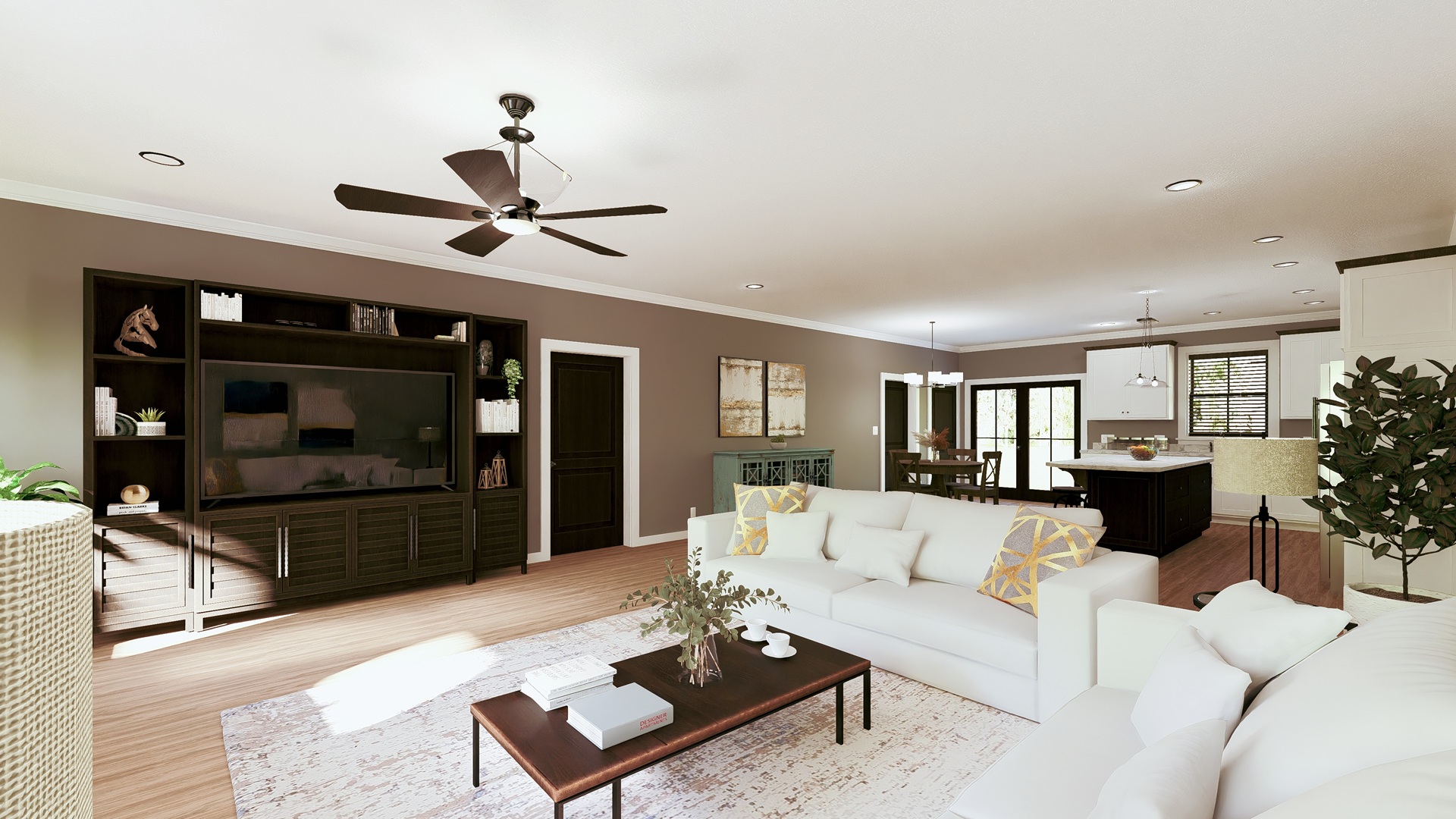 This beautiful 2,000-square-foot home features 3 bedrooms and 2 bathrooms, with an open floor plan that makes it perfect for entertaining. The Great Room and the Kitchen/Dining area flow seamlessly together, maximizing the use of space. The large Master Bedroom is strategically located apart from the secondary bedrooms to ensure privacy. The Master Bath includes dual sinks, linen storage, a spacious custom shower, and convenient access to the walk-in closet.