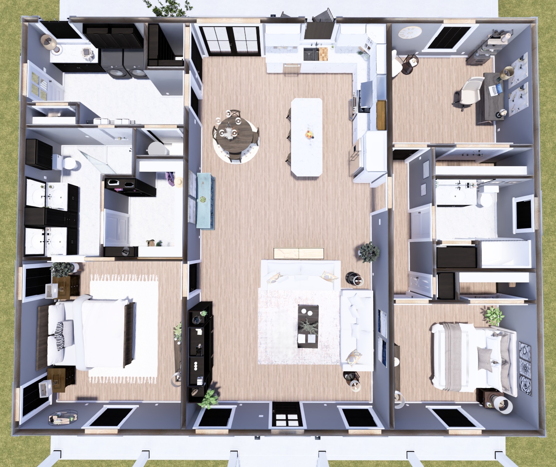 The Laundry Room offers ample storage and is just steps away from the Kitchen. The Kitchen is designed with a snack bar for extra seating and includes plenty of storage options. Bedrooms 2 and 3 are also well-sized and share a generous bathroom. Additionally, two covered porches provide the perfect spots for relaxation at the end of the day.