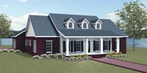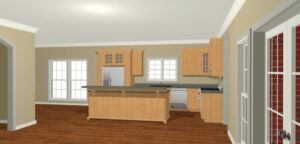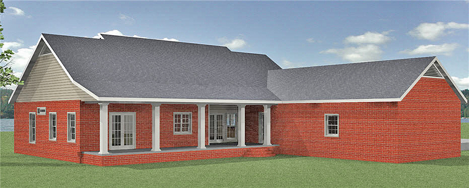 French doors lead to the covered rear porch from the great room. The Master also has French doors that lead out to the rear porch.