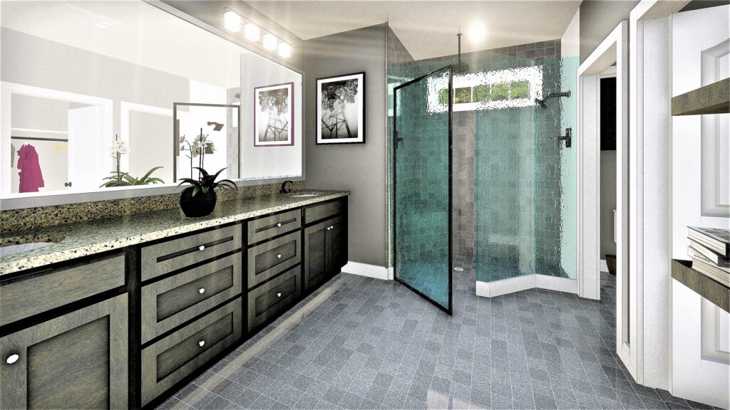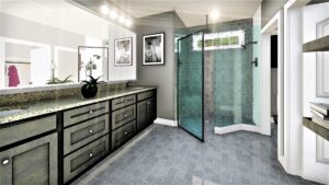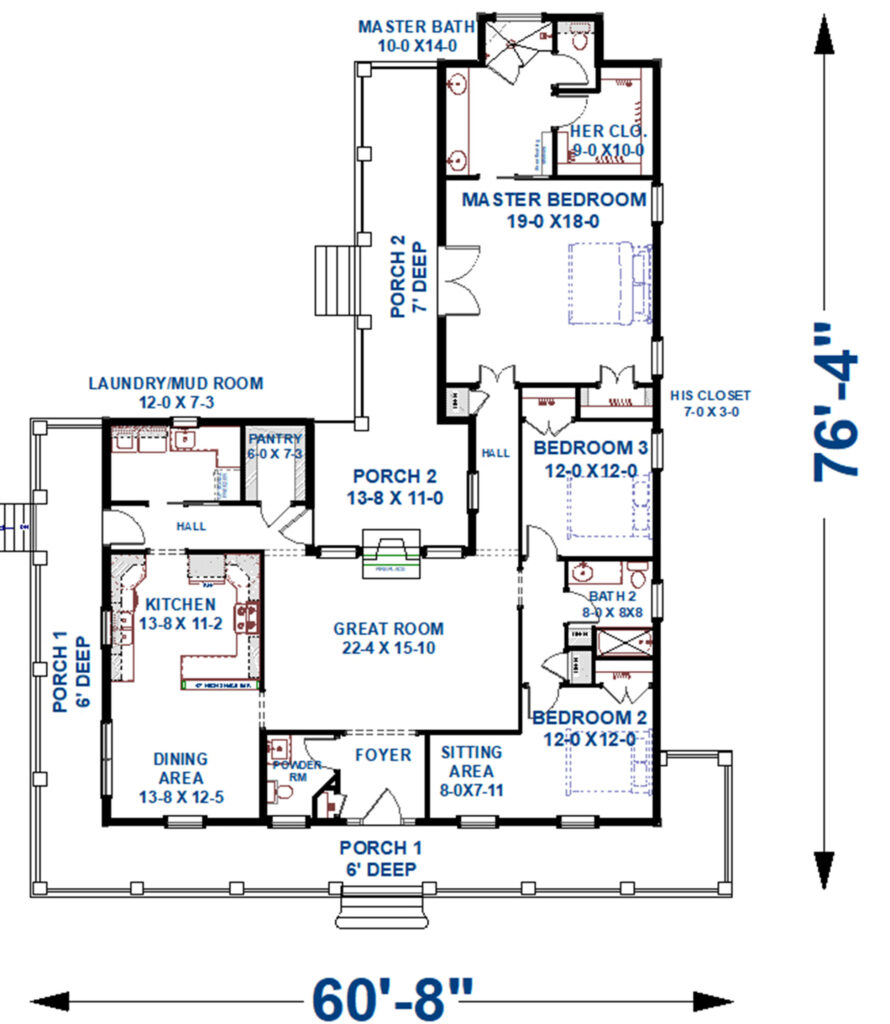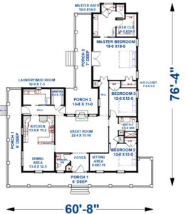 The extra-large Master Bedroom has French doors leading out onto the Rear Porch; this area also contains a spa-style Master bath. This bath has expansive counters with dual sinks, a large custom shower, and a toilet compartment. His and Her walk-in closets that give plenty of storage to this design.