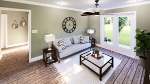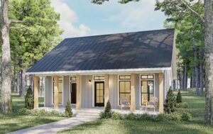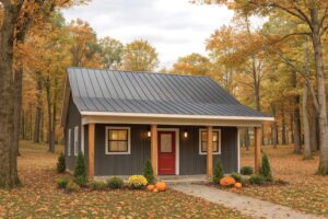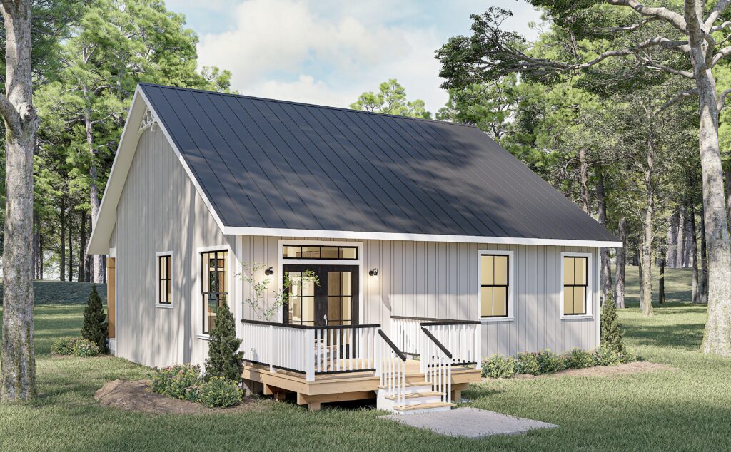 Welcome to this thoughtfully designed 1.5-bedroom home, ideal for first-time buyers, a relaxing getaway, or those looking to downsize in comfort. The inviting 6-foot-deep front porch sets the tone for a warm and welcoming entry. Step inside to the spacious Great Room that flows effortlessly into the Kitchen and Dining area, filled with natural light that enhances the open-concept layout. The Optional Patio extends the Great Room’s living area. An efficient Laundry area is conveniently located in the hall and designed to fit a stacked washer/dryer. The large Bathroom can be accessed directly from the hallway, offering privacy and ease for both guests and residents. The Bedroom features a generous walk-in closet, providing ample storage space. An additional flex space offers the owner’s choice of a Bunk Area or a well-lit Office, complete with a spacious closet—perfect for guests, hobbies, or remote work.
