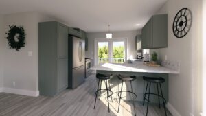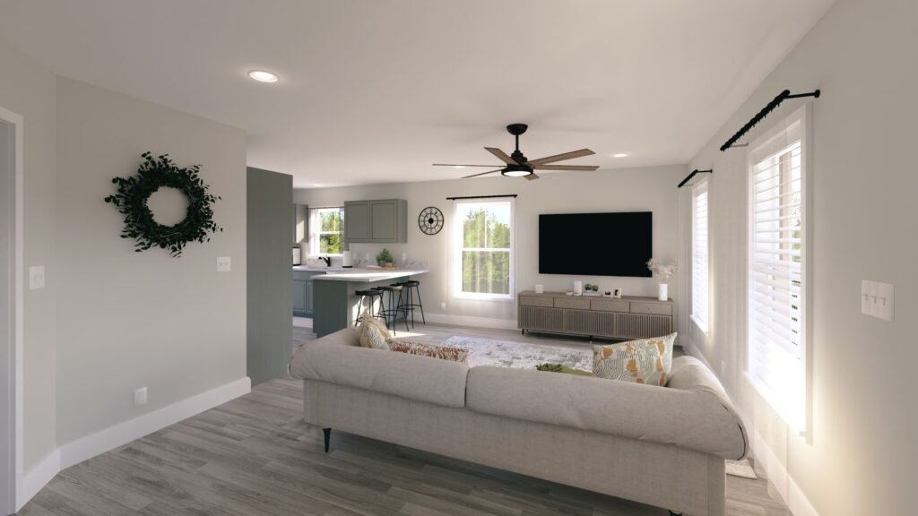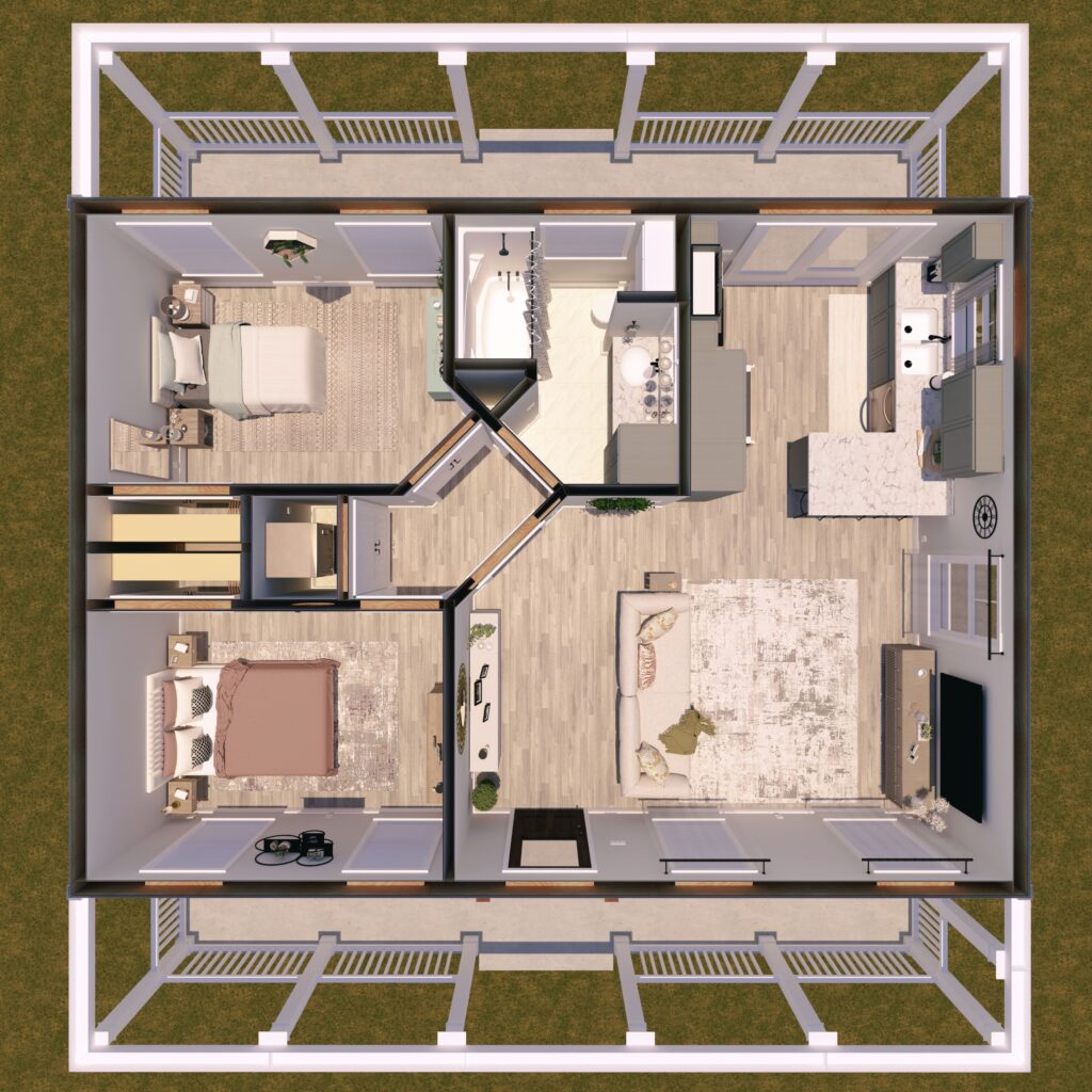 792 heated square feet consisting of 2 bedrooms, 1 bathroom, a laundry closet for a stackable washer and dryer, and an open floor layout separated only by the counter-high snack bar.