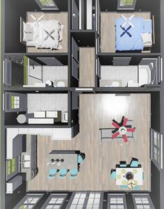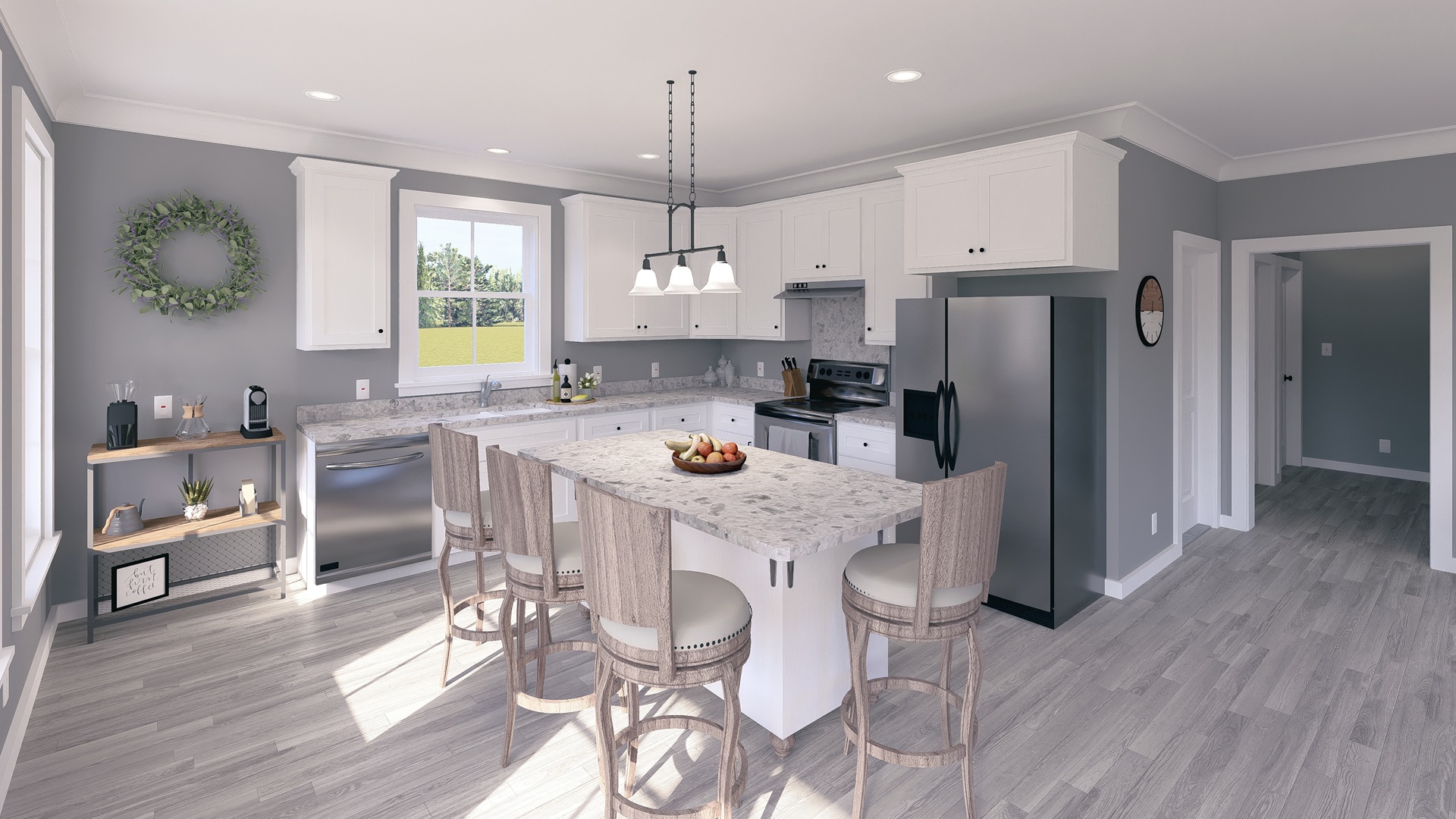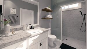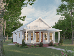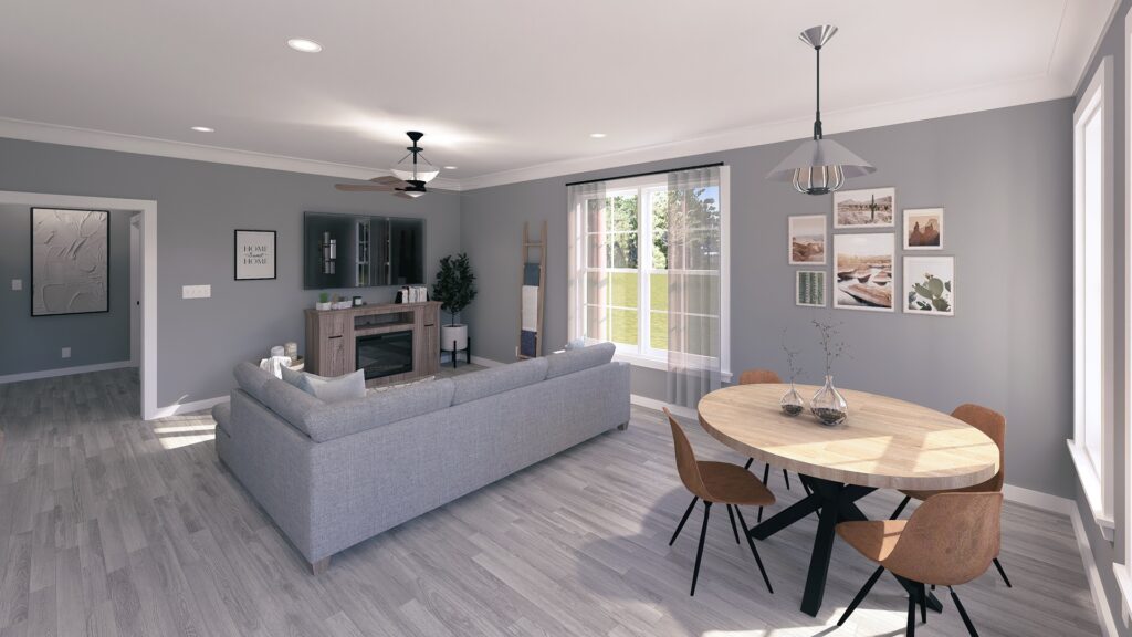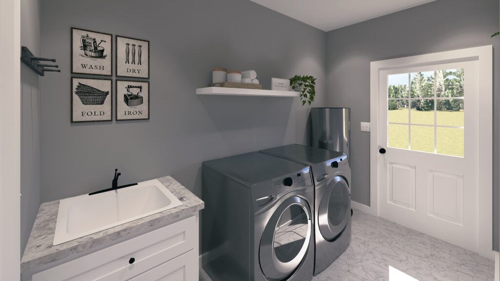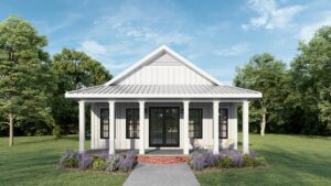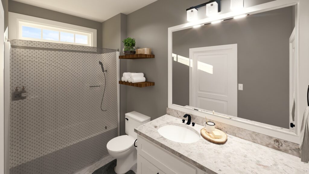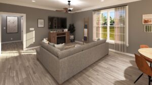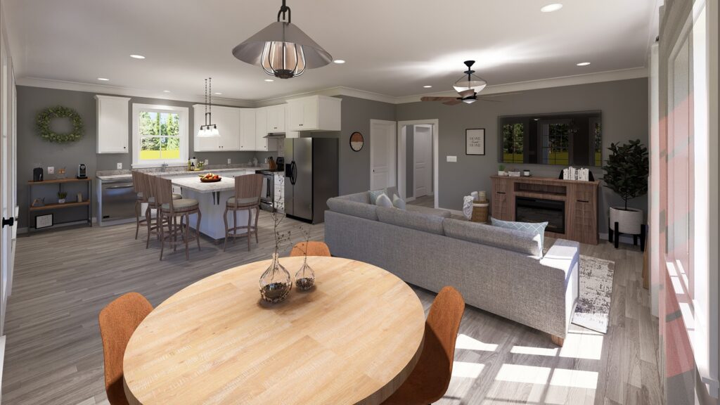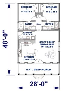 This 1,120-square-foot home is perfect for entertainment with an open floor plan and many windows. The kitchen has lots of natural light and an extra-large island with a counter-high snack bar. The great room/dining area is open to the kitchen and has access to the relaxing 8-foot-deep covered front porch. The laundry room is conveniently located with easy access from the side entrance. This home has 2 bedrooms and 2 bathrooms. Both bathrooms can be accessed from the hall or directly from the bedroom. Bathroom 1 has a large vanity and a custom shower with a high window providing natural light. Bathroom 2 has a large vanity and a tub/shower combo with a high window for natural light. This home is perfect for a retirement, starter, or vacation home.