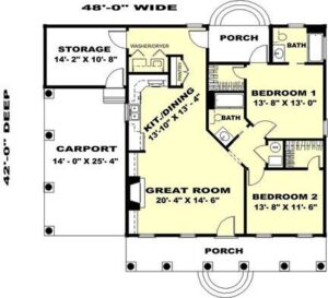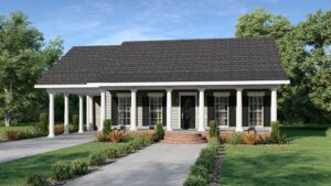 The covered front porch welcomes you into this country cottage. The Great Room features a wall of built-in entertainment unit and upper/lower cabinets for giving unexpected storage.