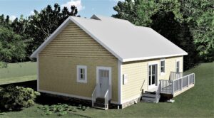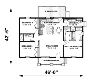 The kitchen has a large island with a counter-high snack bar, French doors lead out onto the optional rear deck.
