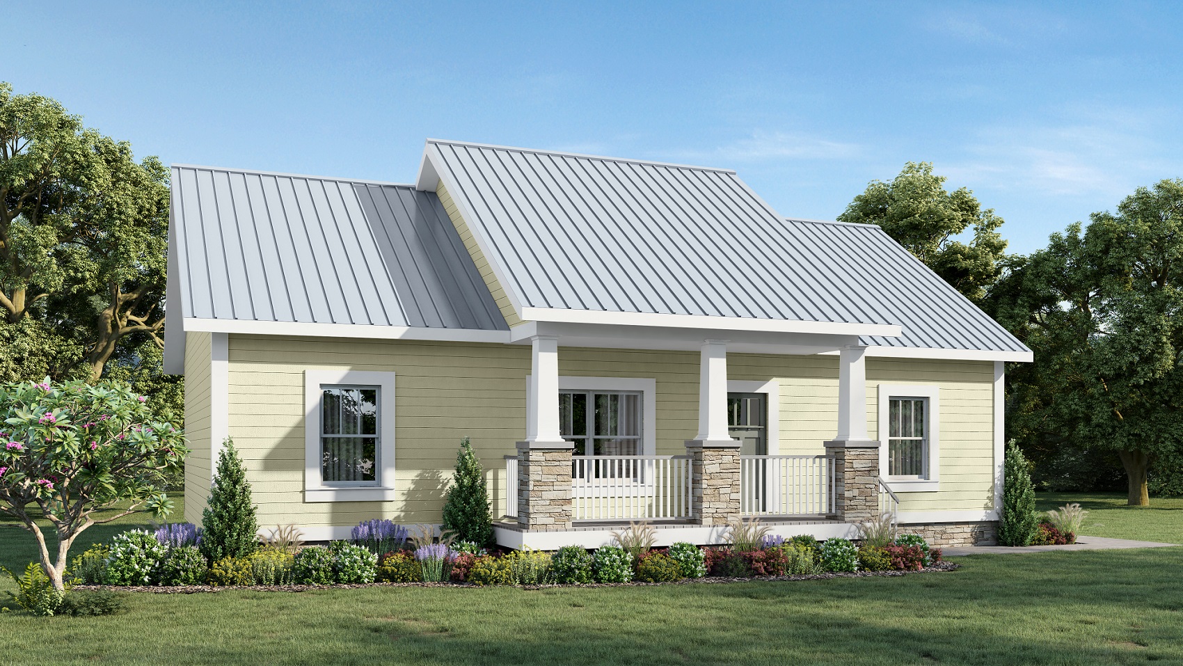 The kitchen has a large island with a counter-high snack bar, French doors lead out onto the optional rear deck.