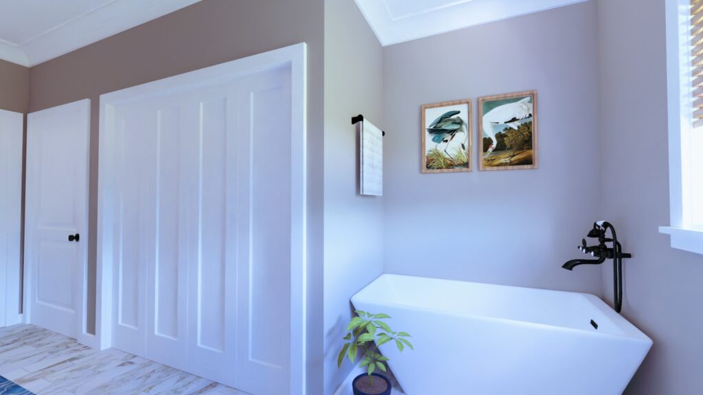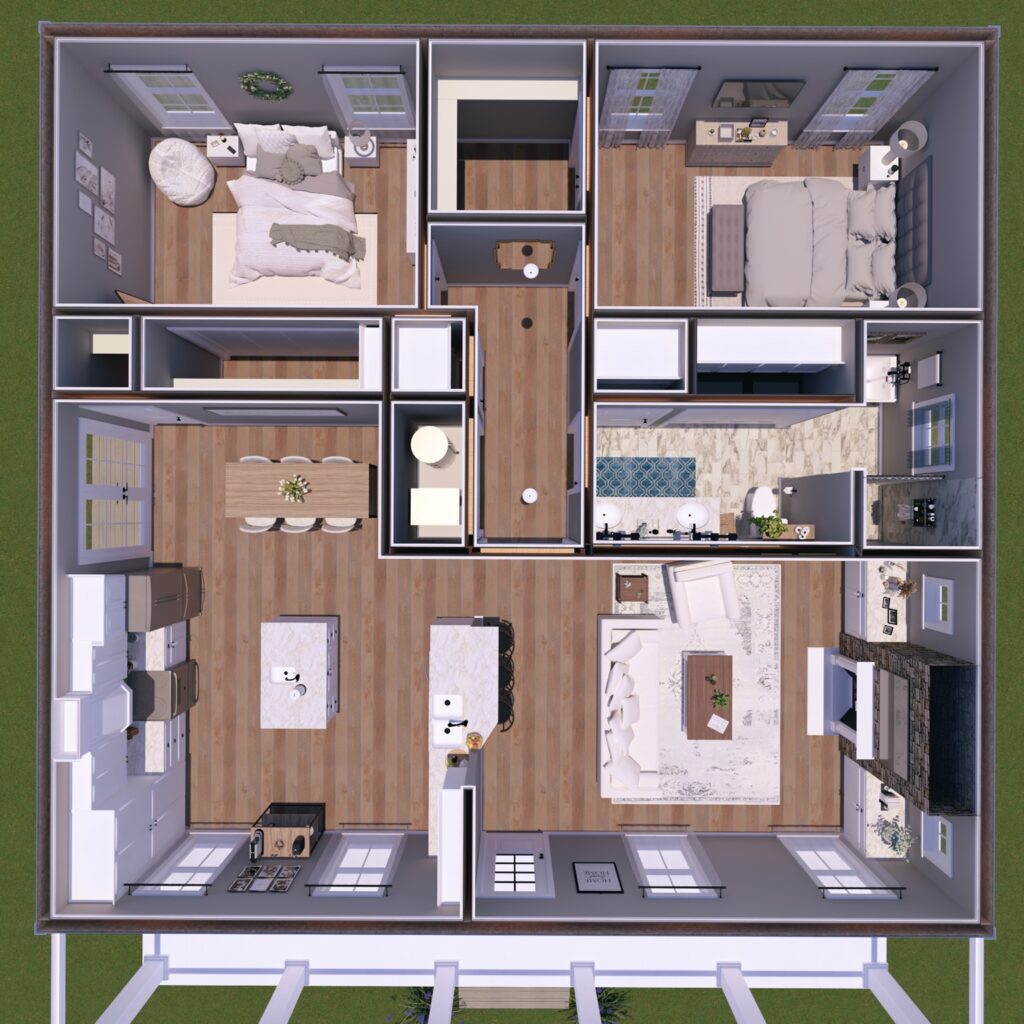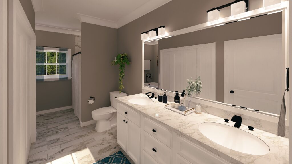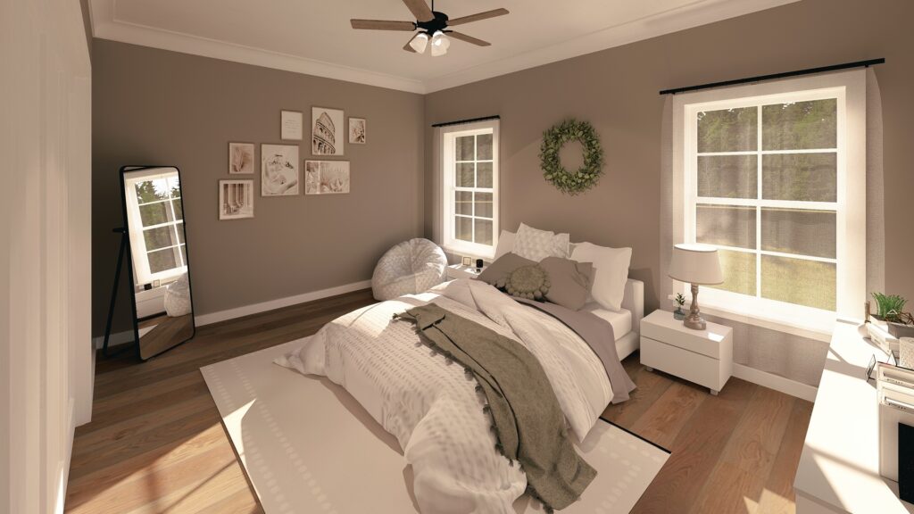 Two large bedrooms are located on the rear of this house for privacy; each bedroom has a walk-in closet.