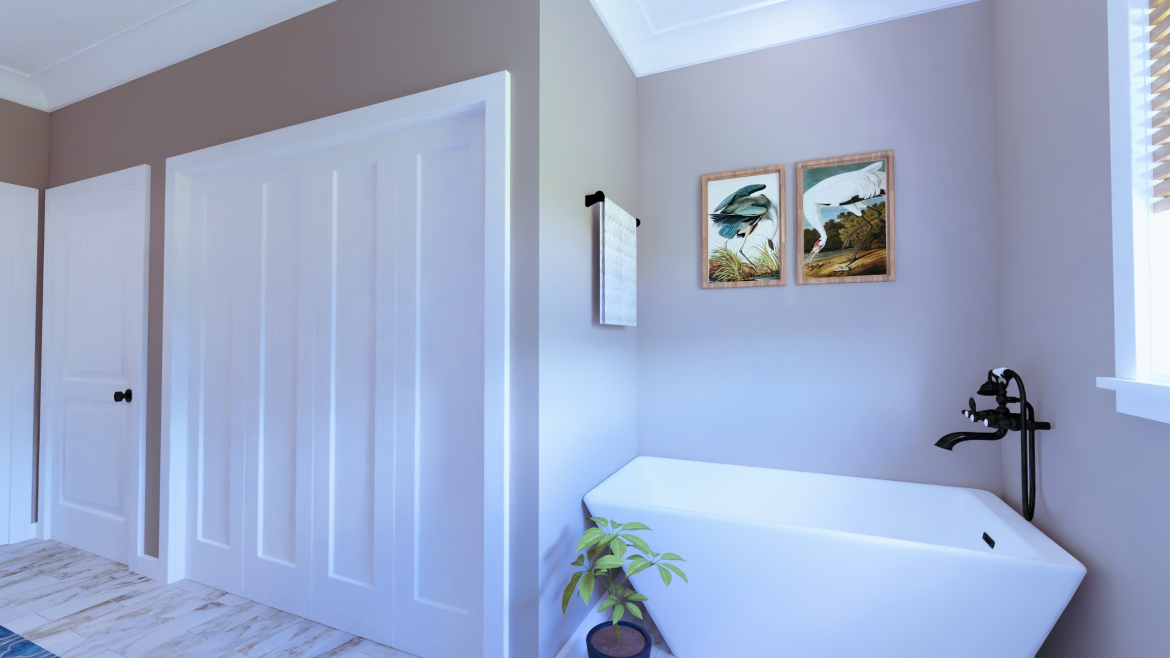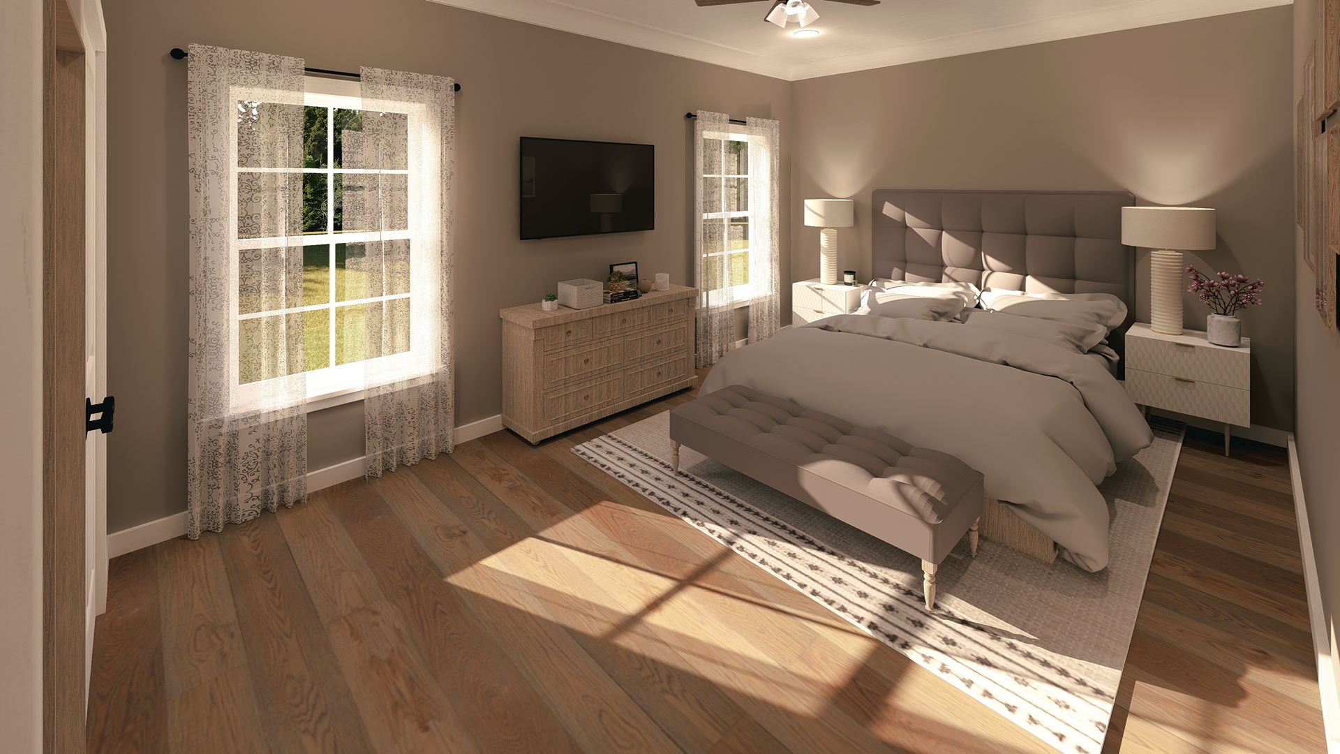 Two large bedrooms are located on the rear of this house for privacy; each bedroom has a walk-in closet.