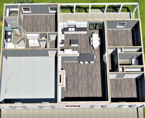 The Dining area is open to the Great Room and shares a snack bar with the Kitchen.