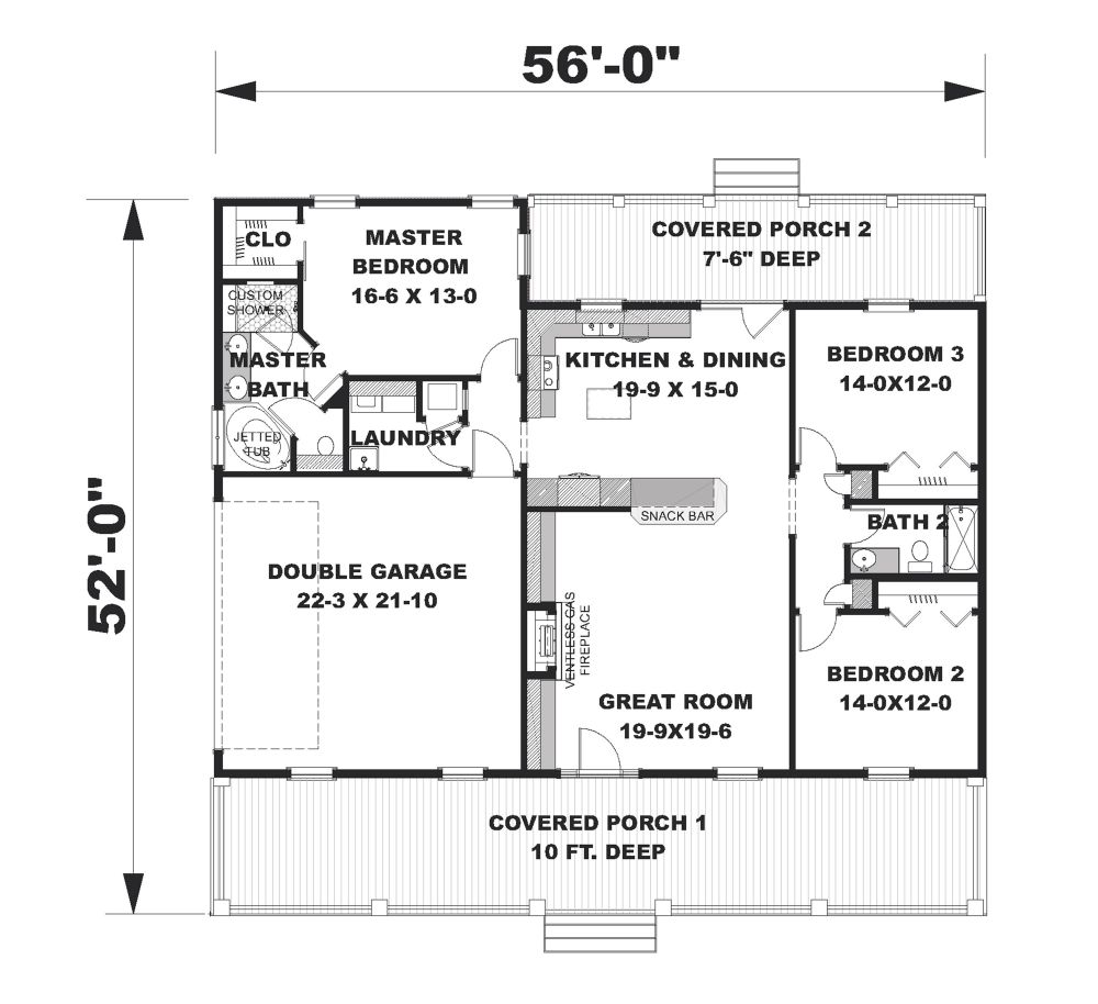 Relax on one of two covered porches, the 10-foot deep front porch or the smaller rear porch located off the Dining area.