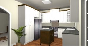 The Kitchen/Dining combine to utilize all of the space. The kitchen has a movable island a big pantry and lots of cabinets.