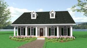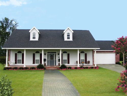 A large master bedroom boasts a huge walk-in closet and french doors that lead onto an l-shaped porch.