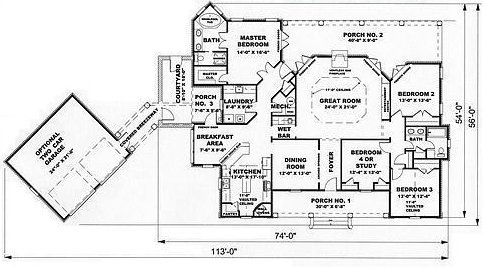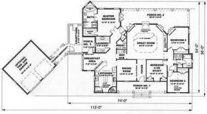 The Master Bedroom will be the owners’ delight! This room has French doors leading onto the rear porch area. The Master Bath contains a corner whirlpool tub, double sinks, and a toilet/shower area. A walk-in closet gives the owners lots of storage.