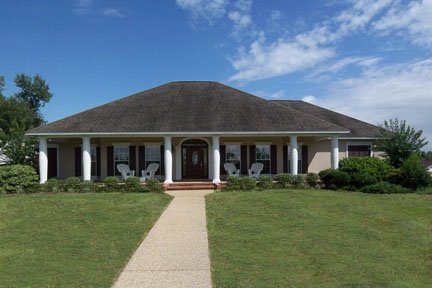 The master bedroom features a wall of windows and cabinets for a special touch. A huge walk-in closet is located within easy reach of the dressing area. Dual sinks are lit with a skylight and a split bath gives privacy. This bed/bath area was designed to make couples’ lives easier. One can still be resting while the other totally get ready for work without waking each other.