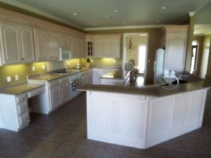 Laundry is made easier with a sink, storage closets, and wall-to-wall cabinets above the w/d and freezer area.