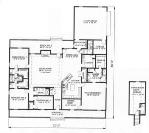 This split bedroom plan has 3-4 bedrooms and 3 full baths (one is even a Jack and Jill bath!)